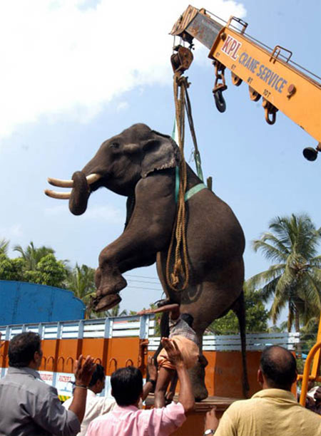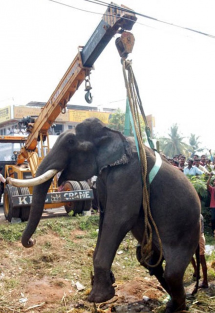 Добавлено: Сб Апр 04, 2009 2:31 pm Заголовок сообщения: В Индии с помощью крана доставили в больницу сбитого на дороге слона