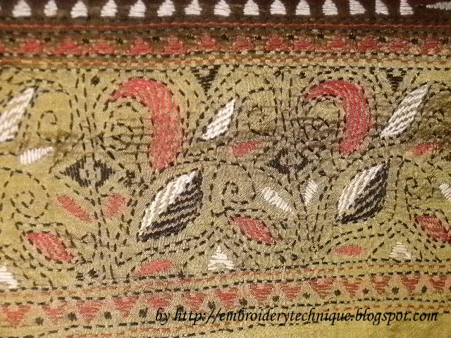 Кантха - пришла к нам из бывшего индийского штата Восточная Бенгалия, а ныне самостоятельного государства Бангладеш. Узоры в этой технике выполняются знакомыми нам по технике сашико мелкими стежками «вперед иголку».